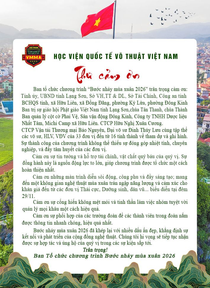 “Bước nhảy mùa xuân 2026” – Niềm tự hào võ thuật Việt – Vươn tầm và tỏa sáng trên bầu trời nghệ thuật nước nhà!